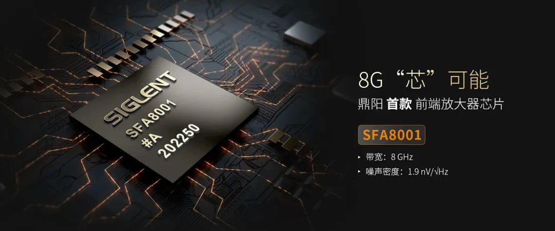 SFA8001作为鼎阳科技首款自研示波器前端放大器专用芯片,具有8GHz的高带宽、1.9nV/√Hz的低噪声密度,能够帮助示波器观察速度更快、幅度更小的信号,亦为鼎阳科技8GHz以及后续更高带宽示波器的研发奠定了坚实的基础。