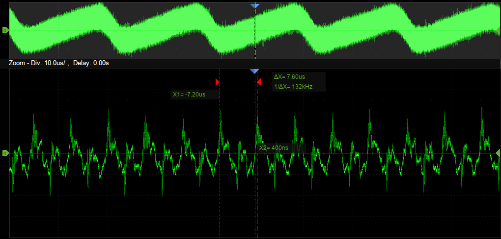 ● FFT,除了CH1-CH8上的实际波形之外,还可以对运算波形执行信号频域测试与分析,峰值检测功能会自动检测杂散频率,便于分析被测电路中的干扰噪声。