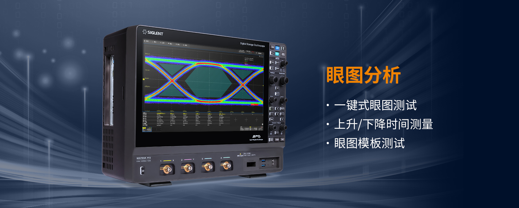眼图分析作为高速系统信号完整性分析的核心,可以反映信号链路上传输的数字信号的整体特征,从中观察码间串扰和噪声的影响,进而评估系统的优劣程度。SDS7000A系列支持眼图测试,增加了更多测量参数,更高效地帮助工程师分析信号质量和确认改进方向。