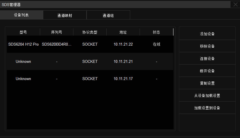 远程设备清单列表显示,通过简单输入IP地址即可从示波器同步配置到 SigScopeLab,轻松实现设备的添加与移除,自带记忆功能,下次连接更方便。此外,还可以从上位机同步配置到示波器,满足用户不同的应用场景。