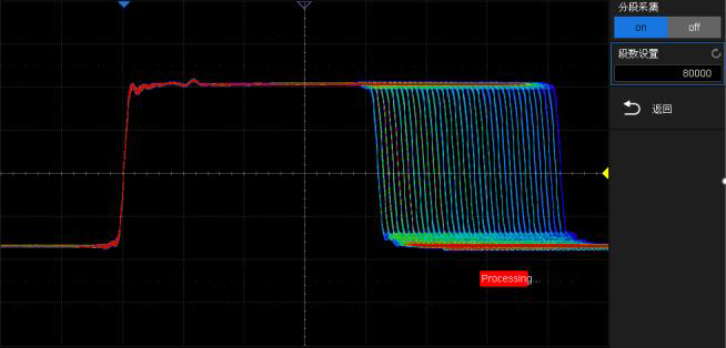 分段采集将波形储存空间分成多段,每段空间存储一个触发帧,最大可以采集80 000个触发事件,在Sequence 周期内可最大限度地降低触发事件之间的间隔时间(小至2.5 μs),提高了对异常事件的捕获概率。Sequence模式下采集的所有波形段可以一次性全部映射到屏幕上,也可以通过History 进行单帧回放。