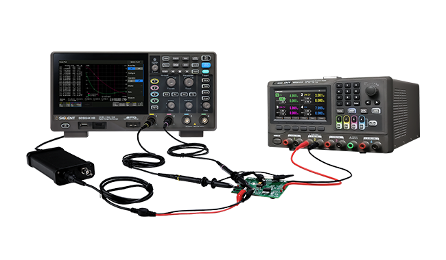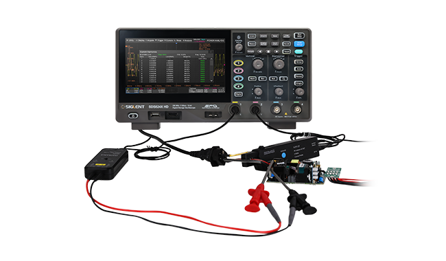 SDS800X HD的电源分析功能搭配鼎阳科技的电压探头(DPB5000系列)、电流探头(CP6000系列),可以快速准确地分析电源质量、电流谐波、浪涌电流、瞬变响应、安全作业区(SOA)等12项参数,帮助工程师解除繁琐的手工配置和复杂的公式计算,极为适用于观察异常谐波、进行谐波分析、评估器件稳定性、判断电磁干扰等测试。