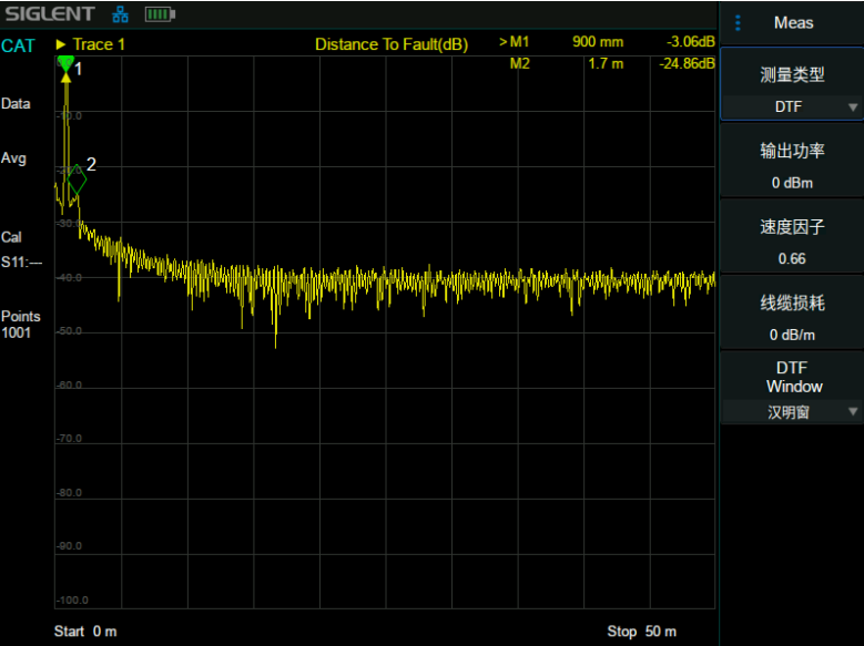 支持故障点距离(DTF)、时域反射计(TDR) 、1端口电缆损耗、2端口插入损耗、回波损耗及VSWR测量功能。