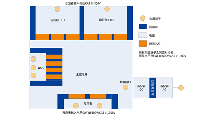 全隔离设计,达到CAT III 测量类别